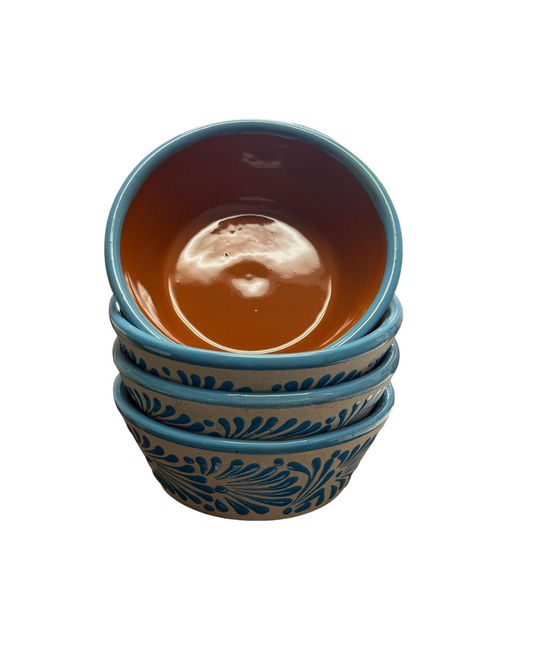 4PCS DE PLATO POZOLEROS ENGOBE CON ESPIGA AZUL