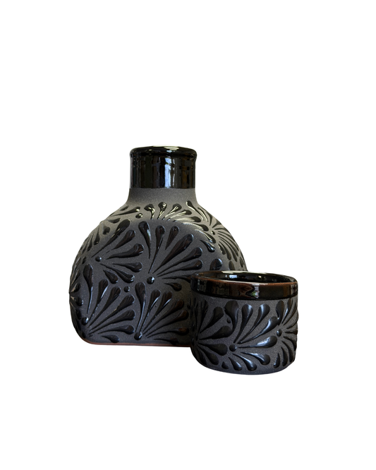 SET DE JARRA CON vasos ENGOBE NEGRO