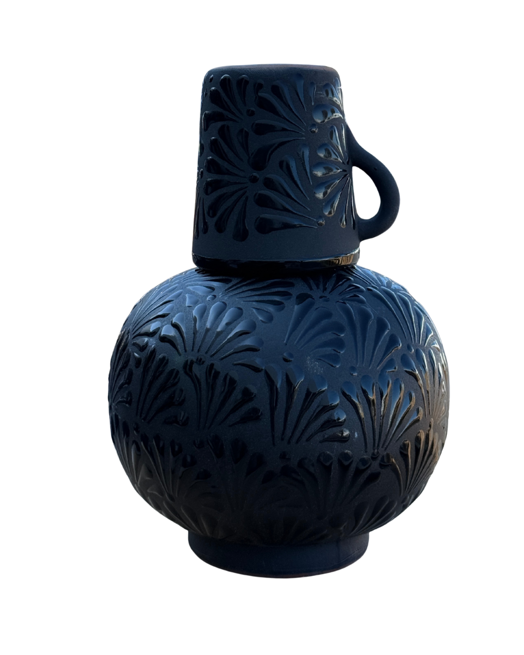 Experience hydration with a twist using the Botellon Negro! Handmade in Mexico with an all-black sleek design, this stylish bottle not only looks cool but makes your water taste better. Perfect for staying refreshed while adding a bold touch to your day. Drink up and feel the difference!
