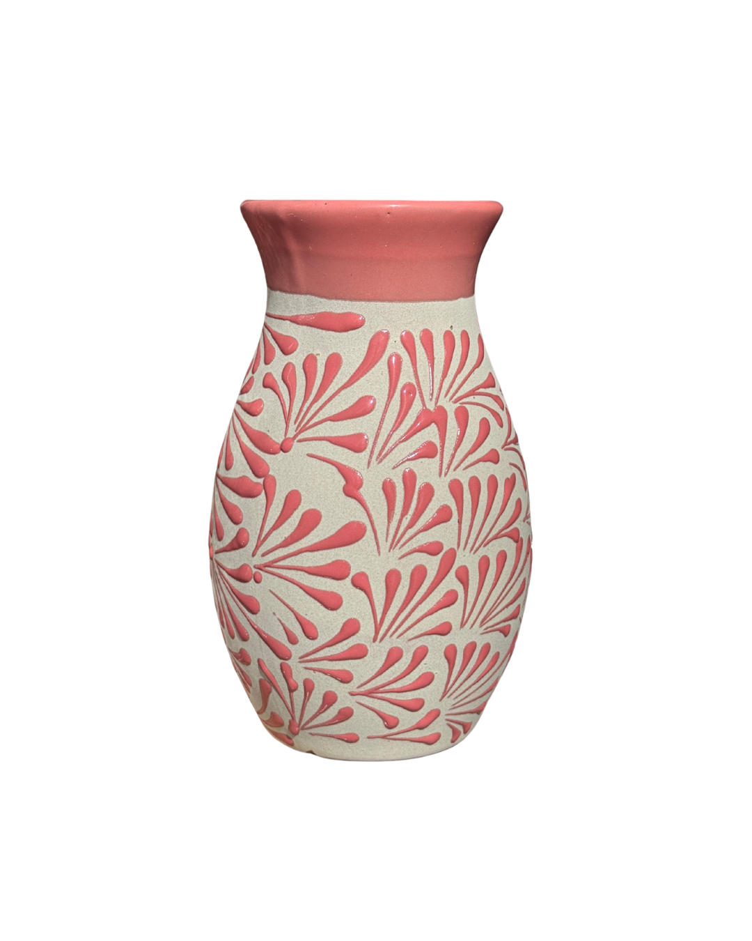 Add a splash of charm to your space with this FLORERO ENGOBE BLANCO Y ESPIGA ROSITA. Standing 9" tall, its white engobe finish pairs beautifully with the delicate pink spike detail, making it the perfect centerpiece for parties or everyday home décor. Handcrafted in Mexico, this vase brings a playful touch of artisanal flair to any room.